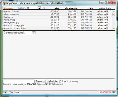 By clicking the "Browse server" button, you'll be connected to the file server which shows all the items you have available in your files directory.