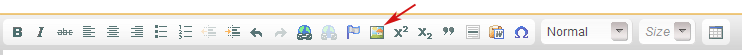 Click where you want the image to go. Go to the WYSIWYG toolbar and click on the button that looks like a little house.