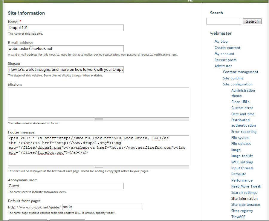 To manually sync everything, go back to your Drupal menu. You can do this by clicking the "Home" menu item and choosing "Drupal menu".
